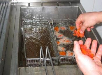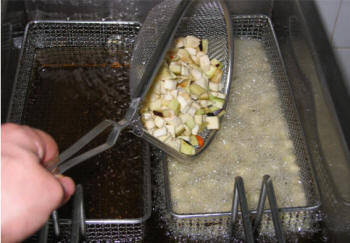 le melanzane in abbondante olio caldo. |
