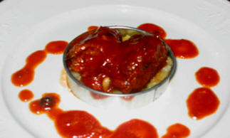 crespella con ricotta e melanzane su coulis di